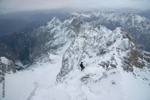 climber, alpinism, ridge, climb, zugspitze, avalanche, snow, danger, rock, cold, cold, cloudy
