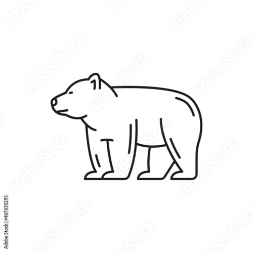 Bern bear isolated thin line icon. Vector side view of wildlife big beast, ursus predator. Wild animal standing on four paws, siberian or american bear. Berne city of Switzerland flag heraldic bear