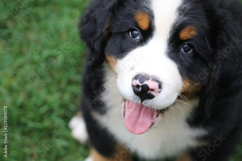 Bernese mountain dog puppy outside. Puppy in the kennel.
