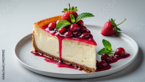 cheesecake, cake, cheese, cherry, dessert, slice, strawberry, sauce, berry, fruit, pie, red, cranberry, plate, white, mint, unhealthy, cafes, piece, background, food, summer, topview, sugar, snack, epicure, eating, baked, fork, sweet, elegance, closeup, creamy, cut, delicious, filling, fresh, freshness, indulgence, object, served, tasty, topping, treat