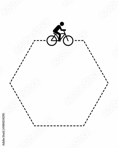 bicycle around a dotted line in the shape of a pentagon