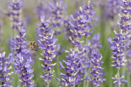 Biene sammelt Nektar im Lavendelfeld