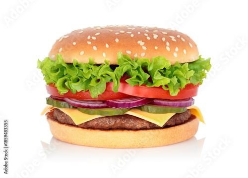 hamburger, burger, fast food, salad, white background, grilled, diet, meal, beef, dinner, sandwich, bread, onion, closeup, isolated, lettuce, bun, delicious, fat, unhealthy, snack, shot, studio, sesame, vegetable, object, tomatoes, tasty, seed, lunch, cheese, colourful, cookery, classic, cheeseburger, nourishment, single, juicy, eating, big, meat, american, cheddar, bran, brown, cutlet