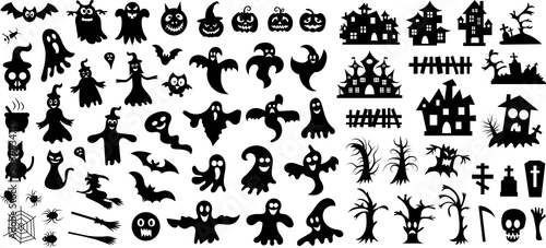 icon, black, pumpkin, ghost, silhouette, horror, symbol, scarey, design, cat, bat, cartoon, spider, isolated, october, element, autumn, set, fear, holiday, sorcerer, background, animal, collection, illustration, web, dark, tree, skittish, evil, skull, night, art, cemetery, cross, bad, skeleton, white, hat, celebration, mammal, creepy, grave, letter, house, signs