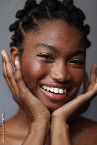 african, african american, attractive, beautiful, beauty, cheerful, closeup, closeup, confident, copy space, copy space, cute, face, facial expression, female, coiffure, happiness, happy, indoor, indoor, lady, laugh, model, natural, portrait, pose, posing, pretty, skin, skincare, smile, studio, woman