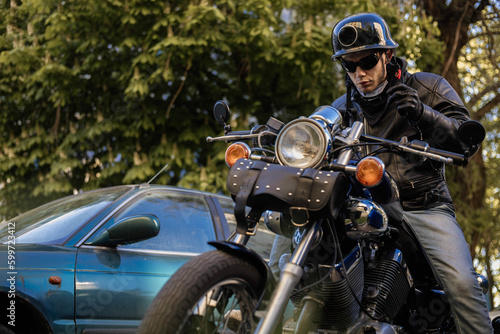 biker, helmet, classic, cruising, racer, hobby, park, adult, power, technology, single, subculture, show, event, chrome, custom, chopper, travel, transportation, transport, motorbike, road, engine, motorcycle, vehicle, bike, rider, motor, ride, lifestyle, people, wheel, speed, background, driver, jacket, machine, black, tire, man, freedom, style, vintage, leather