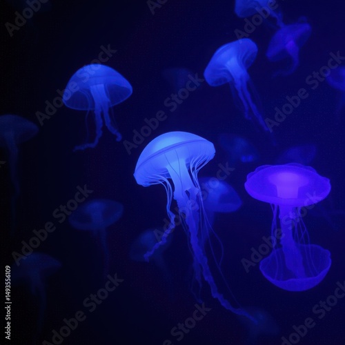 Bioluminescent Jellyfish in Deep Ocean, Neon Sea Creatures, Underwater Marine Life, Artistic Marine Photography