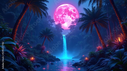 abstract, rainforest, neon, waterfall, futuristic, wallpaper, jungle, glowing, cinematic, branding, book, gaming, background, fantasy, wellness, marketing, nature, science fiction, adventure, mysterious, night, wildlife, digital, magical, aethereal, mystical, surreal, luminescent, plant, aurora borealis, borealis, lightning, water, landscape, colourful, dark, aurora, moon, illustration, star
