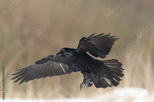 Bird Common Raven Corvus corax, dark style big black scary bird flying, Helloween