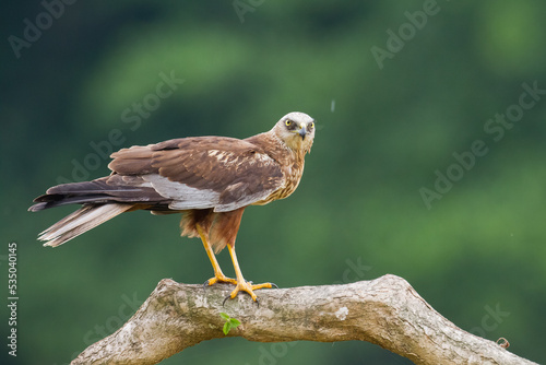 Birds of prey Marsh harrier Circus aeruginosus, hunting time Poland Europe bird perched on tree