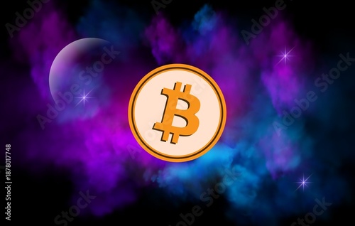 Bitcoin-BTC cryptocurrency logos drawings on digital background.
