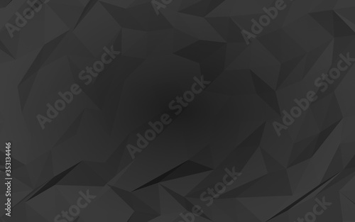 Black abstract background. Lowpoly backdrop. Gloomy crumpled paper. 3D illustration