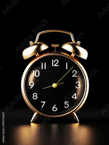Black Alarm Clock. Isolated Clock with Pointer and Bell for AM and PM Time Indication. Watch the Time