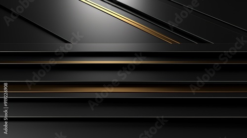 Black and gold geometric background with lines and stripes.