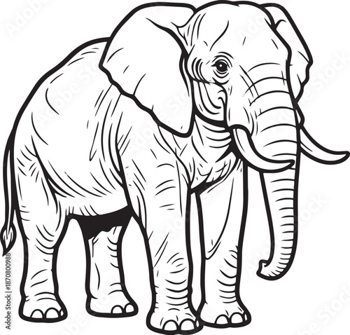 black-and-white, wild animal, african elephant, asian elephant, tusk, trunk, high contrast, monochrome, logo design, hand-drawn, graphic art, white background