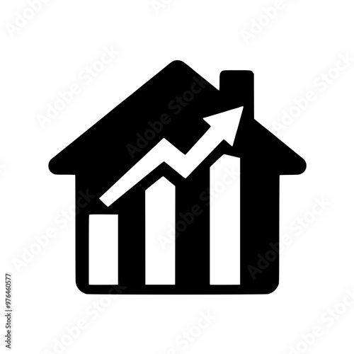 house, icon, growth, real, estate, market, property, investment, trend, graph, arrow, increase, economy, finance, black, white, simple, illustration, symbol, upward, chart, datum, improvement, development, housing, business, home, rise, success, vector, graphic, iconography, modern, design, statistic, line, bar, profit, surge, boom
