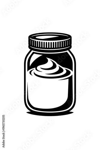 Black and white illustration of a jar with a swirl design on the contents, isolated on a white background for versatile use