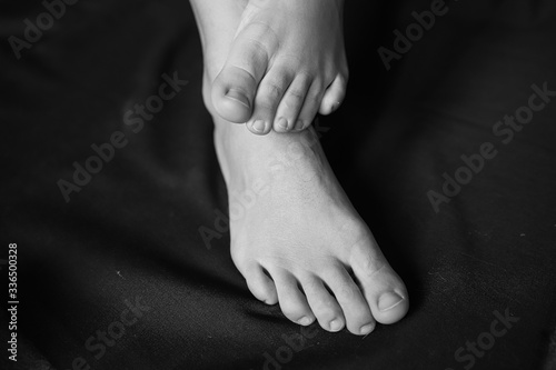 black and white photo of female feet, beautiful female legs