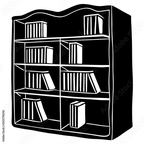 library, book, shelf, bookshelf, book, bookcase, furniture, vector, education, literature, illustration, shelf, office, school, bookshop, interior, study, design, home, wood, cabinet, collection, row, room, information