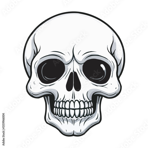 Black and White Skull Illustration. Detailed Line Art. Detailed Black and White Skull Illustration. Vintage human skull concept
