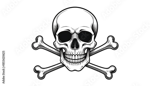 skull, bone, crossbones, death, pirate, warning, danger, poison, graphic, horror, fear, scarey, halloween, vector, illustration, anatomy, skeleton, deadly, toxic, symbol, isolated, emblem, icon, morbid, dark, white, teeth, grin, fatal