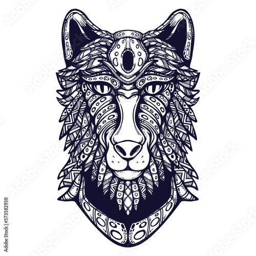 wolf, wild, wildlife, animal, face, head, art, tattoo, tribal, illustration, zoo, pet, colouring, black-and-white, graphic, safari, pattern, logotype, ornamental, decoration, decorative, vector, drawing, silhouette, mascot