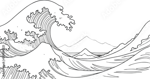 wave, illustration, design, background, draw, graphic, drawing, drawn, engraving, art, engraved, ocean, retro, vintage, white, black, engrave, vector, water, sea, artwork, black-and-white, blackboard, concept, curve, fantasy, fashionable, flowing, futuristic, glowing, horizontal, image, ink, japan, japanese, liquid, monochrome, no people, off, oriental, painting, photo, print, hallucinogen, rippled, seascape, striped, surreal