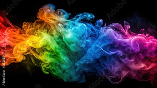 Black backdrop, colorful smoke art, dynamic abstract.