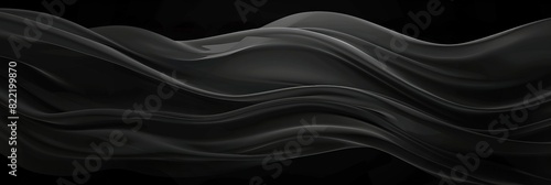 Black background with soft waves,black silk smooth waves pattern backdrop design . Black satin silk luxury wave cloth background. banner