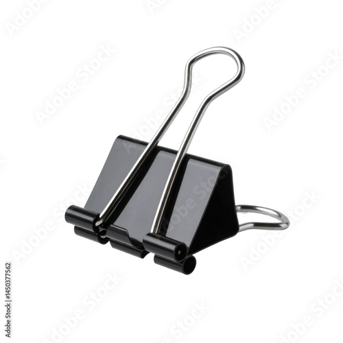 Black Binder Clip Floating on Transparent Background