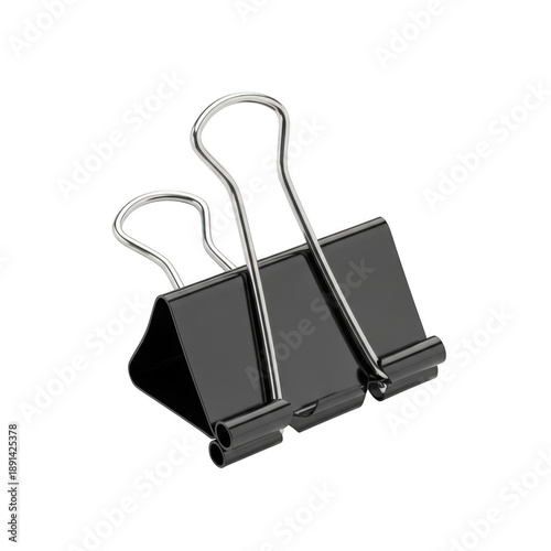 Black binder clip isolated on transparent background