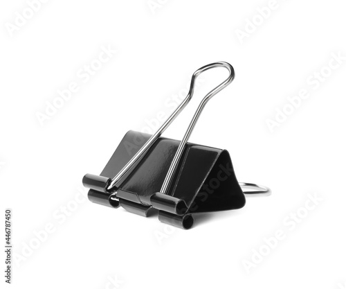 Black binder clip isolated on white. Stationery