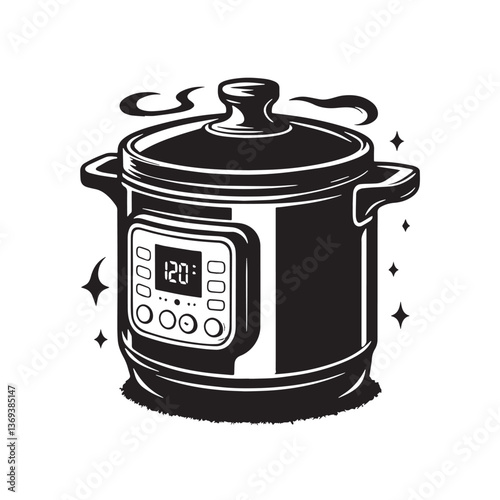 Black Color Instant Pot Silhouette Vector Illustration, Solid White Background