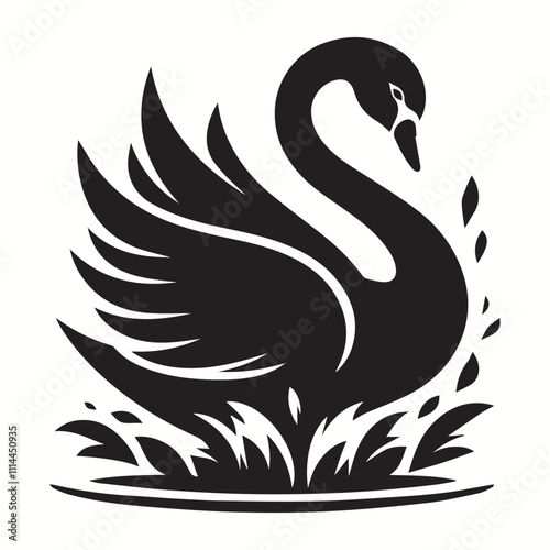 Black Color Swan Silhouette Vector Illustration, Solid White Background.