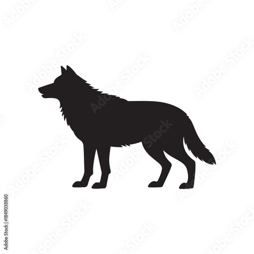 Black Color Wolf silhouette Silhouette Vector Illustration, Solid White Background (4).eps