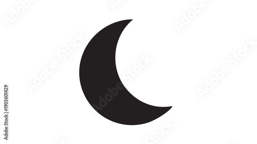 Black Crescent Moon Isolated on White Background
