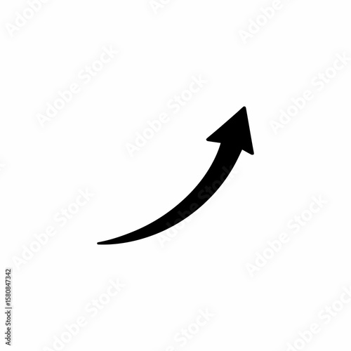 arrow, black, curved, upward, directional, graphic, icon, symbol, design, element, isolated, white, background, simple, minimalist, movement, progress, growth, direction, forward, success, positive, vector, illustration, shape, pointer, navigation, increase, trend, up, right, diagonal, bold, thick