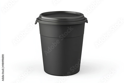 container, disposable, black, plastic, lid, round, cylindrical, storage, hot drink, cup, food, drink, portable, recyclable, waste, recycling, hard-wearing, modern, simple, empty, clean, sealed, lightweight, convenient, functional, material, product, design, cardboard box, graphic, three-dimensional, rendering, isolated, studio, white, background, closed, stacking, capacity, strength, protection, unbranded