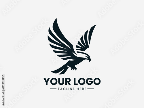 Black eagle logo with outstretched wings on a white background with space for custom text and tagline.