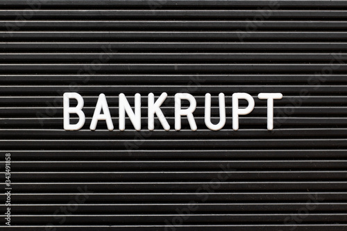 Black felt board with white alphabet in word bankrupt background