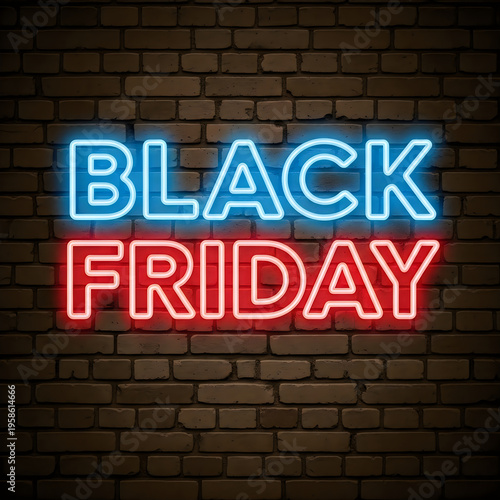 Black friday neon sign on brick wall