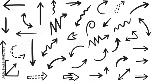 Black hand drawn arrows on white background black arrows