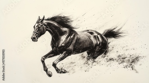 horse, galloping, speed, animal, motion, art, vignetting, drawing, black-and-white, running, energy, powerful, freedom, nature, racing, equestrian, silhouette, dramatic, wild, noble, athletic, strong