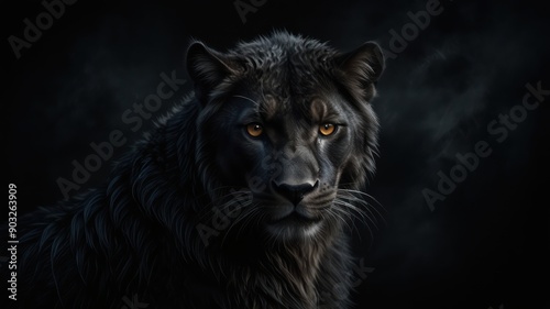 Black lion an enigmatic chimera emerges from the shadows its form
