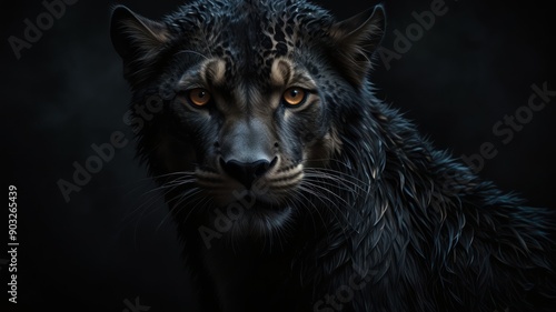 Black lion an enigmatic chimera emerges from the shadows its form