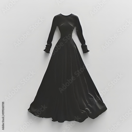 black, dress, maxi, pleated, long, sleeve, garment, fashion, clothing, style, formal, elegant, attire, feminine, sophisticated, silhouette, fabric, soft, smooth, classic, tailored, modern, chic, simple, minimalist, luxurious, exquisite, evening, occasion, party, cocktail, wedding, prom, outfit, trend, design, seam, stitch, hem, neck, collar, bodice, skirt, waist, woman, clothes, beauty, model, costume