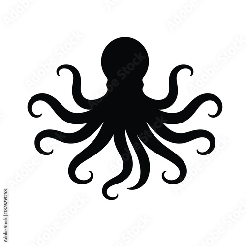 Black Octopus Silhouette with Curved Tentacles