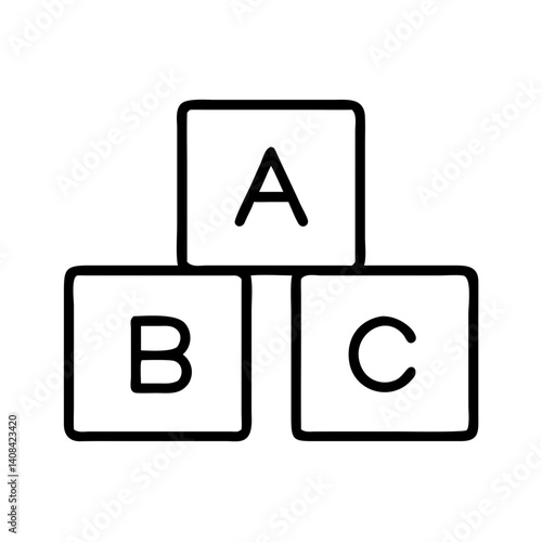 alphabet, block, rudiments, baby, toy, education, learning, letter, icon, outline, black, line, vector, simple, minimal, isolated, white background, toddler, children, infant, preschool, school, development, flat, cartoon, doodle, cube, early, play, children, classroom, cute, symbol, teaching, stacking, cognition, childhood, wooden, building, shape, object, fun, literacy, smart