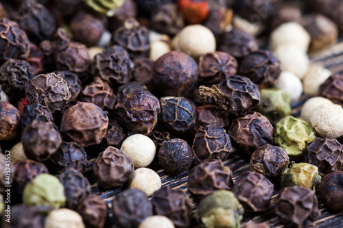 black peas pepper on an old wooden table
