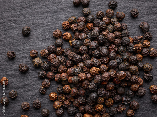 black pepper seeds on the surface of a black stone